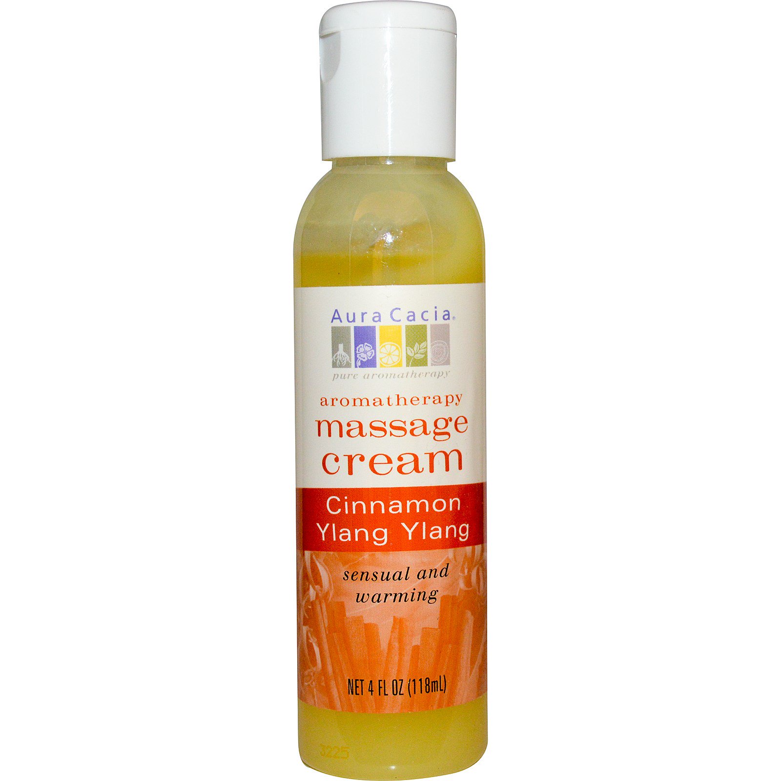 Aura Cacia, Creme de Massagem de Aromaterapia, Canela e Ylang Ylang, 4 fl oz (118 ml)