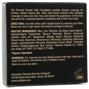 Nossa base Pressed Powder Satin fornece uma cobertura impecável para uma pele saudável e radiante. Os minerais sedosos oferecem cobertura construtiva para ajudar até mesmo o tom de pele e suavizar a aparência de linhas de expressão e poros, para uma pele naturalmente bonita com um acabamento sem brilho. A Azélique® combina minerais pigmentados triplamente moídos a produtos orgânicos para criar essas bases acetinadas em pó prensadas, elaboradas eticamente.