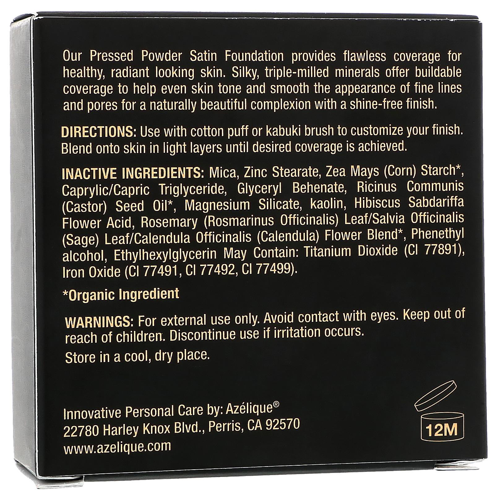 Azelique, Base acetinada em pó compacto, Leve, Sem Crueldade com animais, Certificada com Vegano, 0,35 onças (10 g)