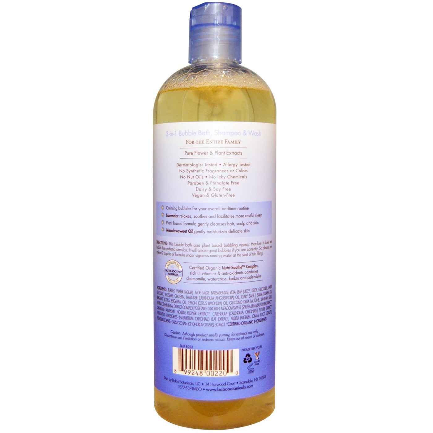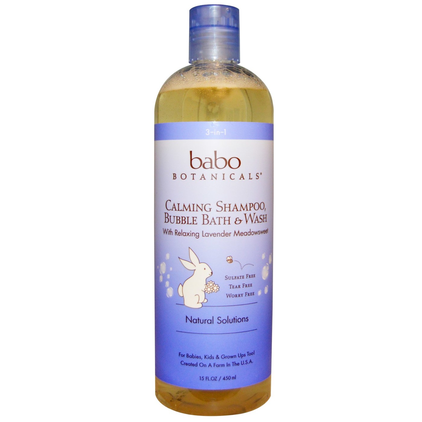 Calming Baby 3 in 1: Bubble Bath, Shampoo & Wash by Babo Botanicals features a lavender meadowsweet scent. This product comes in a regular 15 ounce size as well as a 2 ounce travel size as well.