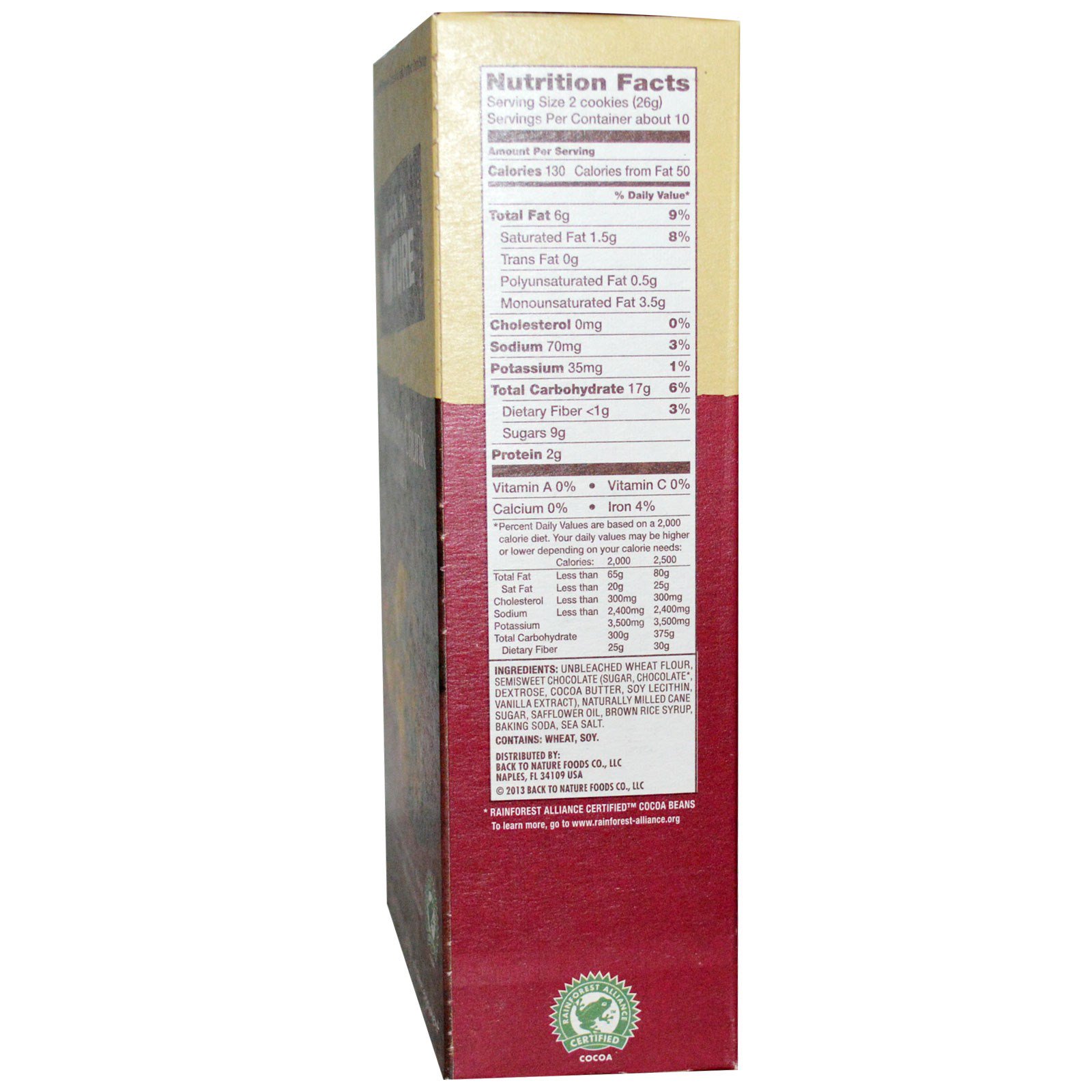 Farinha de trigo não blanqueada, chocolate semi-doce (açúcar, chocolate *, dextrose, manteiga de cacau, lecitina de soja, extrato de baunilha), açúcar de cana natural moído, óleo de cártamo, xarope de arroz integral, bicarbonato de sódio, sal marinho.