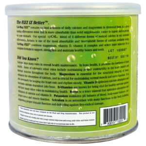 O FIZZ Cal-Mag contém quantidades diárias perfeitas de cálcio e magnésio em suas formas elementares, em uma bebida efervescente deliciosa que é mais absorvível do que suplementos sólidos, mais fácil de ingerir e mais suave com o seu estômago. Nossa mistura EpiCAL especial de 4 formas diferentes de cálcio ionizado na nossa fórmula efervescente é uma das formas mais absorvíveis e biodisponíveis de cálcio à disposição hoje. O FIZZ Cal-Mag combina magnésio, vitamina D, complexo de vitamina B e minerais selecionados para uma fórmula completa que auxilia a reforçar e manter ossos e dentes saudáveis.