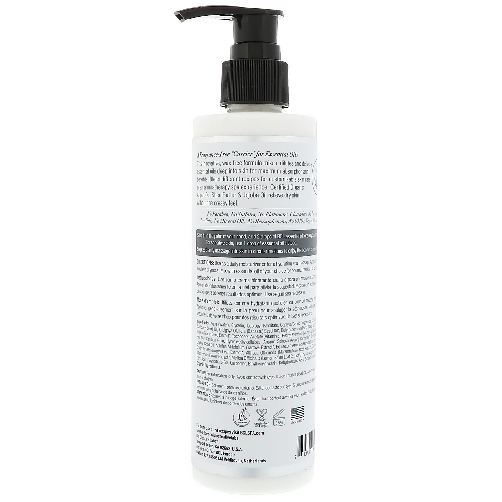 Use as a daily moisturizer or for a hydrating spa massage. Apply liberally to skin to relieve dryness. Mix with essential oil of your choice for optimal results. Use as needed.