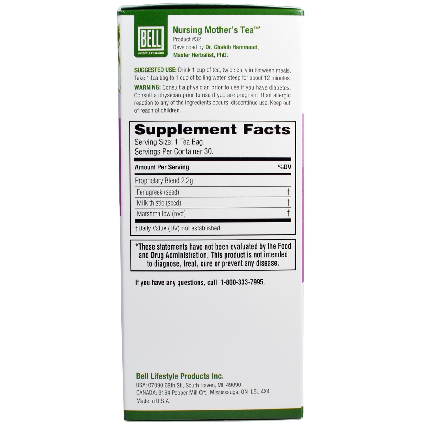 Nursing Mothers Tea from Bell is a blend of nine ingredients for a great beverage.