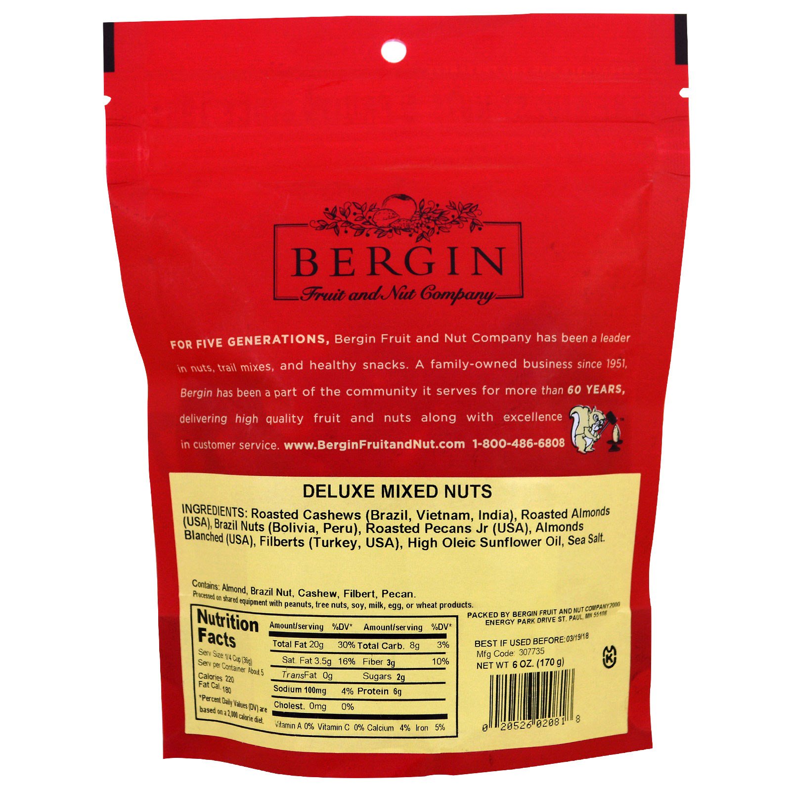 Bergin Fruit and Nut Company, Mixed Nuts, Deluxe, 6 oz (170 g)