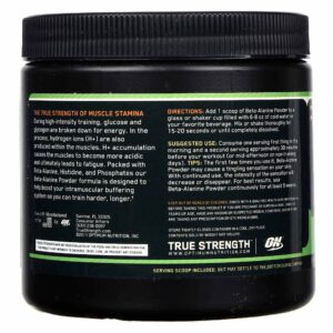 Depois de grandes quantidades de exercícios vigouosos, nossos músculos cansam e fica mais difícil se exercitar o tanto quanto gostaríamos. A Beta-Alanina em pó da Optimum Nutrition founece a recuperção que seus músculos necessitam para que o tempo de fadiga seja reduzido drasticamente. Esta fórmula ajuda a impulsionar o seu sistema de tamponamento intramuscular para que você possa treinar quando quiser.