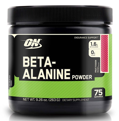 Muscle Fatigue Fighter. With Histidine and Electrolytes. 1.6g Beta Alanine. 0g Sugar. 75 Servings. The True Strength of Muscle Stamina: During high-intensity training, glucose and glycogen are broken down for energy. In the process, hydrogen ions (H+) are also produced within the muscles. H+ accumulation causes the muscles to become more acidic and ultimately leads to fatigue. Optimum Beta-Alanine Packed with Beta-Alanine, Histidine, and Phosphates our Optimum Beta-Alanine Powder formula is designed to help boost your intramuscular buffering system so you can train harder, longer.