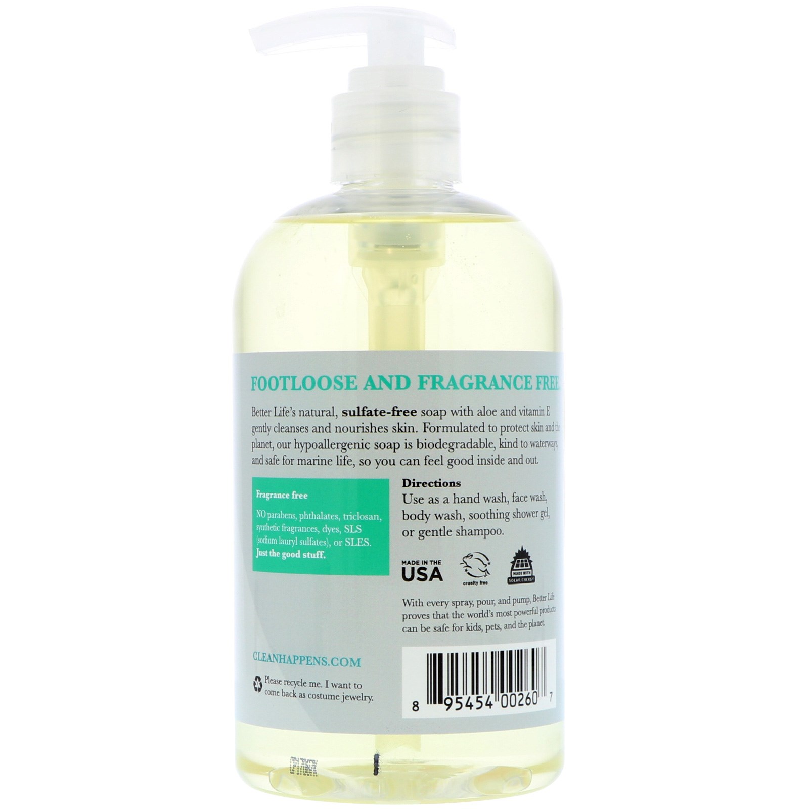 Better Life’s natural, sulfate-free soap with aloe and vitamin E gently cleanses and nourishes skin. Formulated to protect skin and the planet, our hypoallergenic soap is biodegradable, kind to waterways, and safe for marine life, so you can feel good inside and out.
