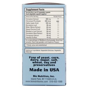 Bio Nutrition’s Blood Sugar Wellness contains a blend of proven herbal ingredients like cinnamon, bitter melon and fenugreek as well as chromium picolinate and alpha lipoic acid.