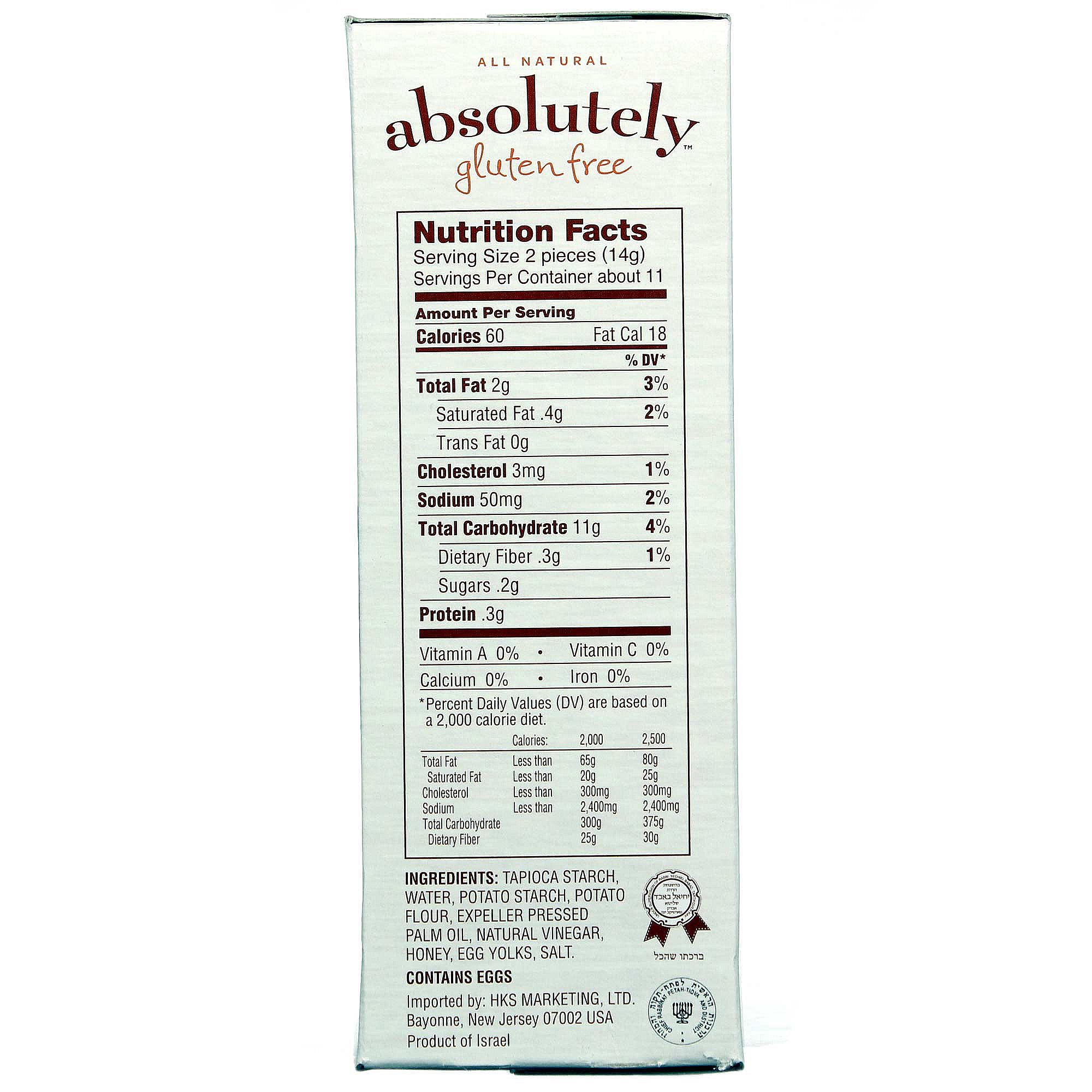 Notas: Certificado sem glúten e kasher pareve.
