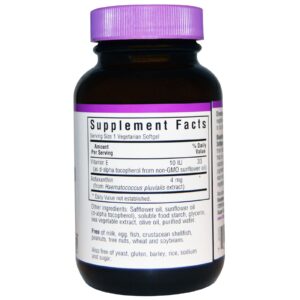 Bluebonnet’s Astaxanthin 4 mg Vegetarian Softgels provide a vegetable-based astaxanthin from marine algae (Haematococcus pluvialis) that is sustainably sourced. Astaxanthin is a natural carotenoid that provides the pink-to-red pigments found in plants and fish. Available in easy-to-swallow vegetarian softgels for a truly vegetarian formula from the inside and out.