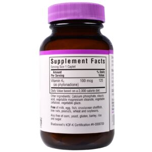 Bluebonnet’s Vitamin K1 100 mcg. Caplets provide natural vitamin K1 (phytonadione) in its purest crystalline form. Available in easy-to-swallow caplets for maximum assimilation and absorption.