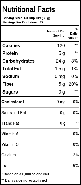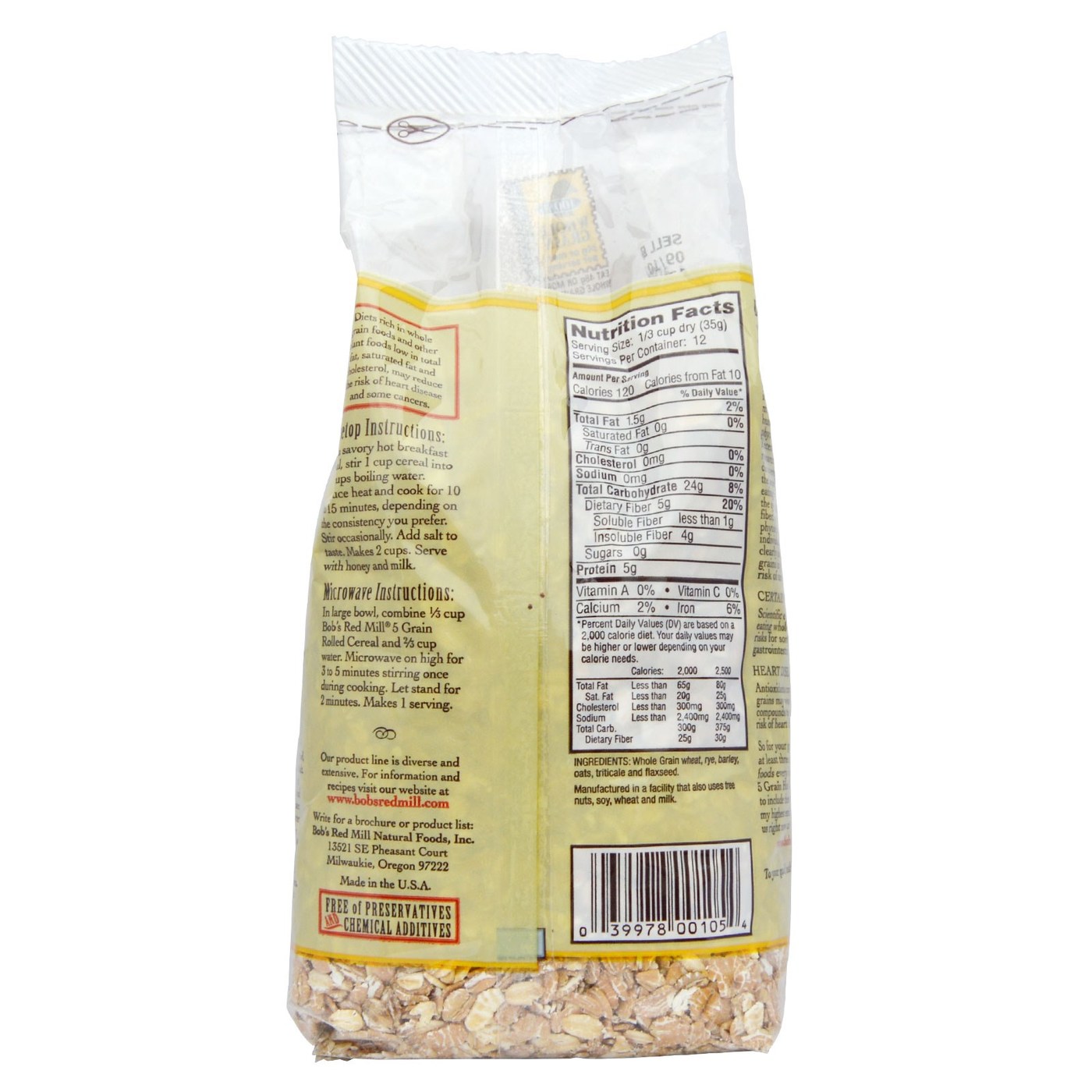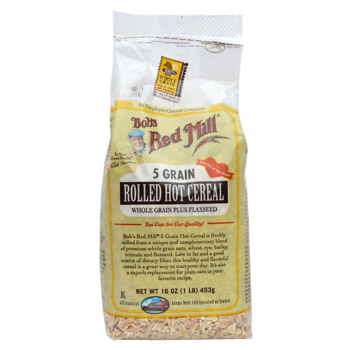5 Grain Rolled Whole Grain Hot Cereal from Bob’s Red Mill is a stone ground combination of rye, oats, rolled whole wheat, flaxseed, triticale and barley which provides not only a filling meal but it full of fiber, protein and other nutrients.