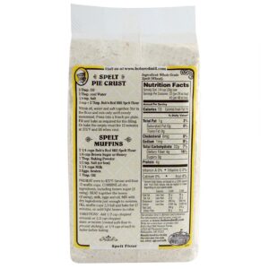Spelt Flour from Bob’s Red Mill differs from other flours in that its highly water soluble; meaning the nutrients are quickly absorbed and dispersed throughout the body. Spelt has been used for more than 9,000 years as a staple grain if wheat could not be grown in a certain area.