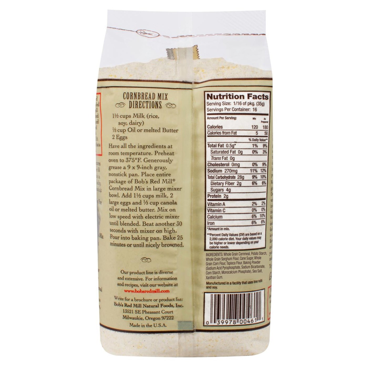 Each batch of Gluten Free Cornbread Mix is tested to ensure there’s no contamination along the production route, and Bob’s Red Mill makes this mix without dairy, wheat or caseins. The all-natural ingredients help make each warm, fluffy bite of cornbread a homestyle love that really satisfies.