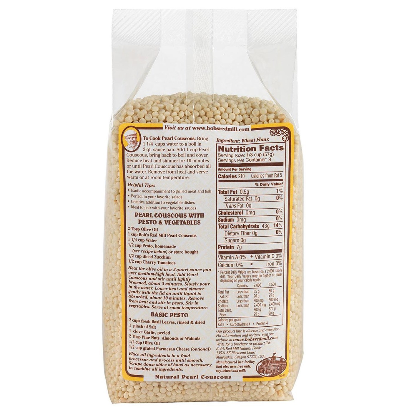 To create Natural Pearl Couscous, small balls of semolina flour is toasted to create a unique pasta with a slightly nutty flavor. Pearled couscous is sometimes called Israeli couscous. It can be ready to eat in just a few minutes and makes a great substitute for both rice and pasta. You can also use couscous as a base for soups and stews.