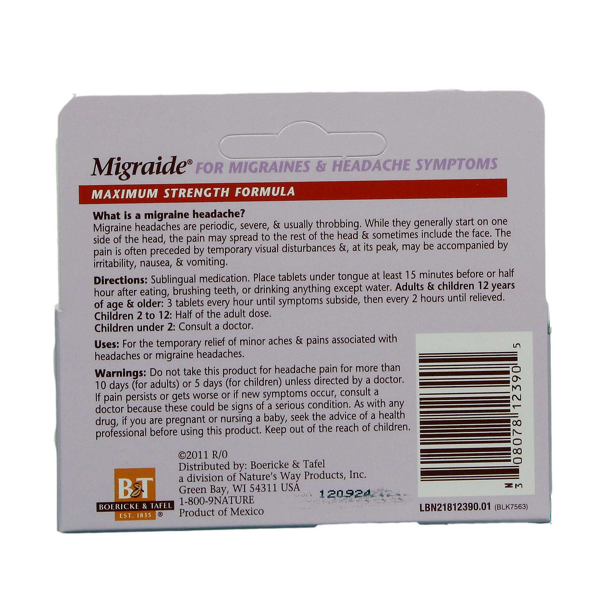 Migraide for Migraines & Headaches by Boericke and Tafel is a sublinqual product and is a maximum strength formula.