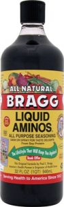 BRAGG LIQUID AMINOS is a Vegetable Protein Seasoning from Non-GMO Verified Soybeans from the Original Formula by Health Pioneer and the Originator of Health Stores, Paul C. Bragg.