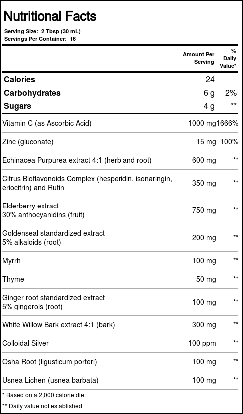 Recomendações de uso: Shake well. Adults should take up to 2 tablespoons before meals and at bedtime or as directed by a healthcare professional. Children over 4, take up to 1 teaspoon before meals and at bedtime. For children under 4, consult a healthcare professional.