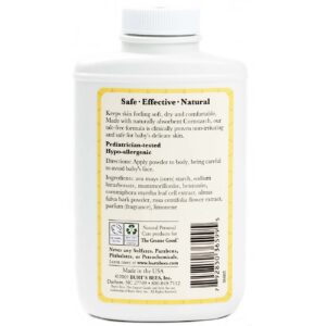 Burt’s Bees natural Baby Bee Dusting Powder is hypoallergenic with comfortable cornstarch and no talc.