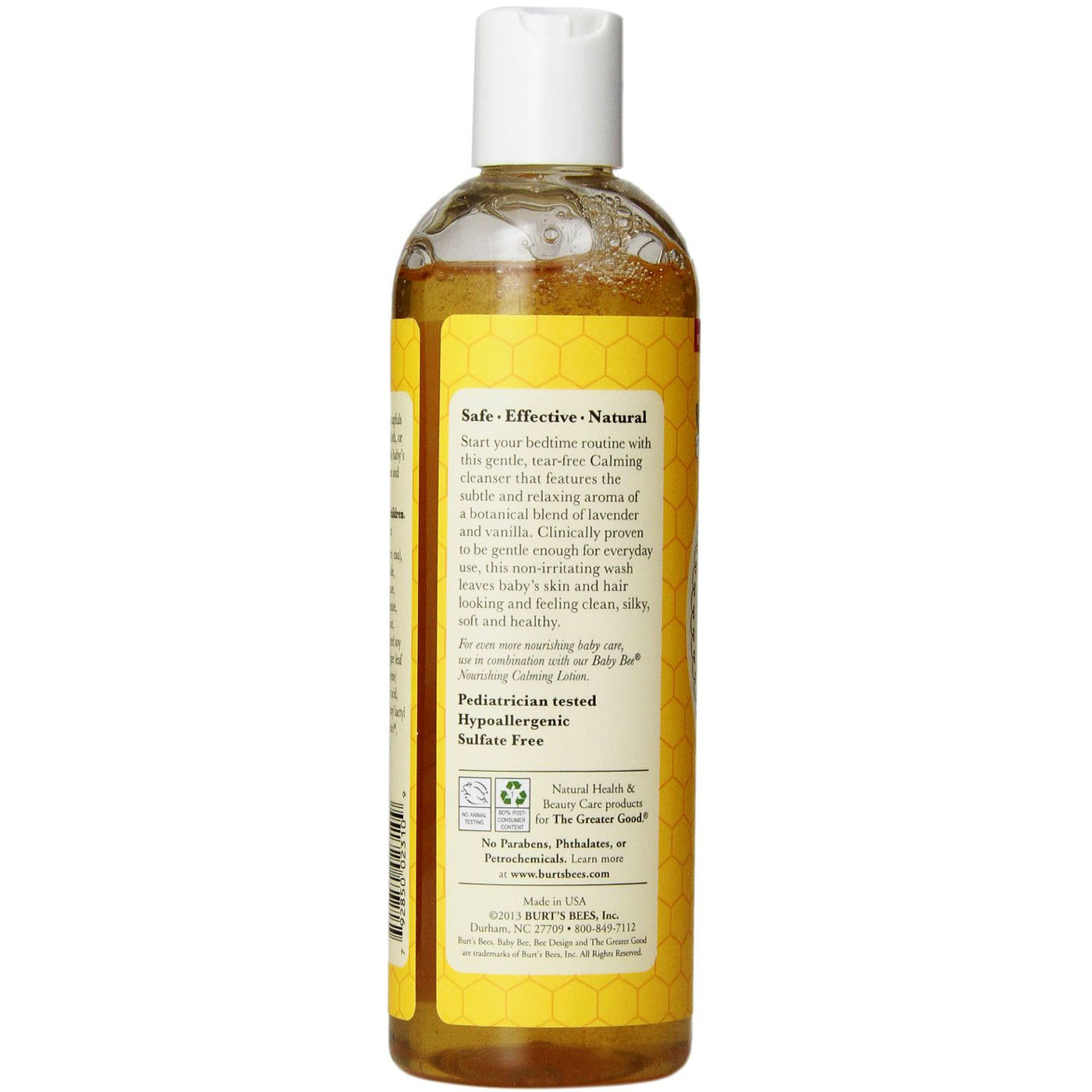 Notas: No phthalates, parabens, petrolatum, or SLS. Hypoallergenic. Tear free.
