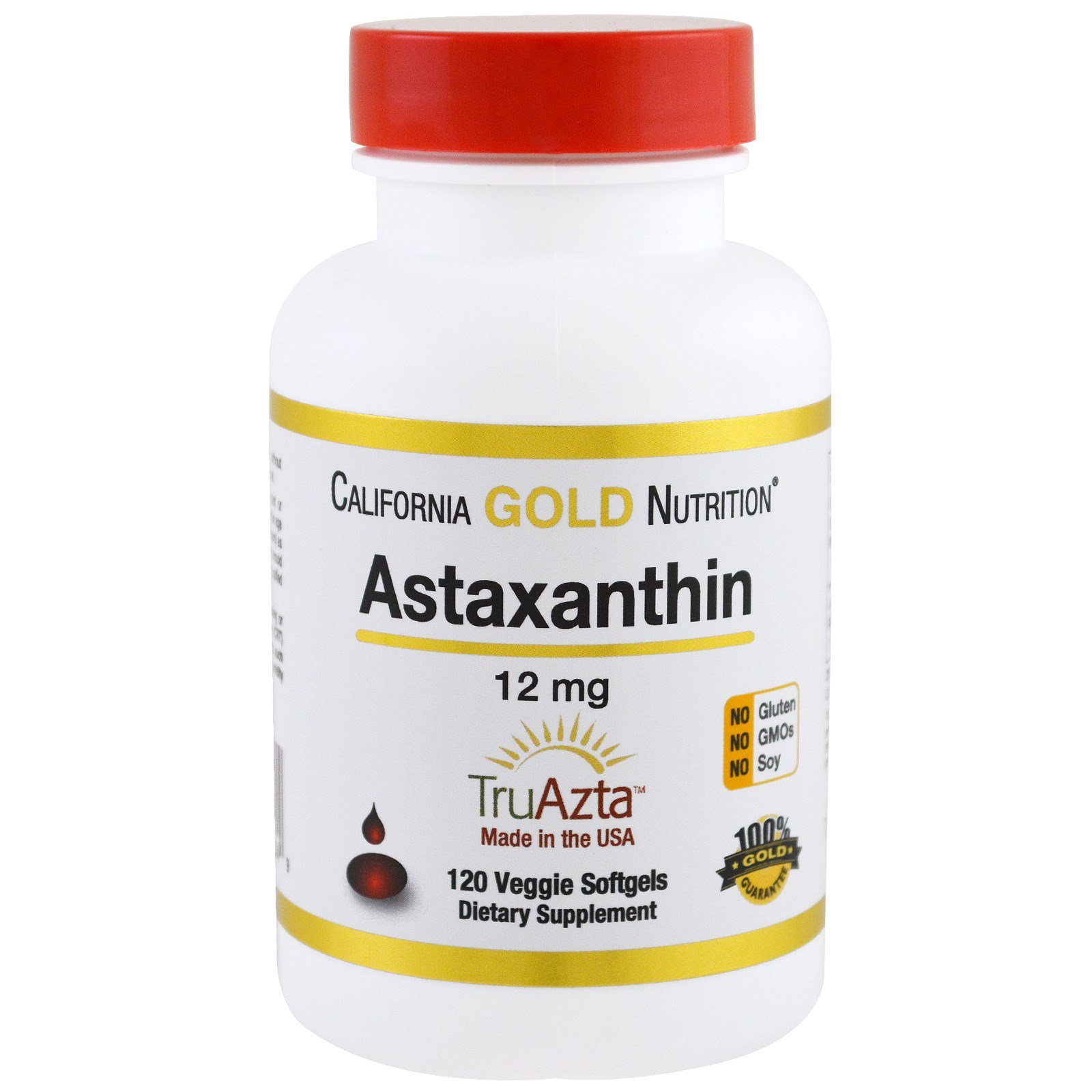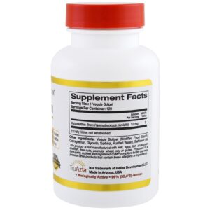 California Gold Nutrition, Astaxantina Natural, Tripla-Força, Originária e Produzida nos EUA, Sem OGMs, 12mg, 120 Softgels