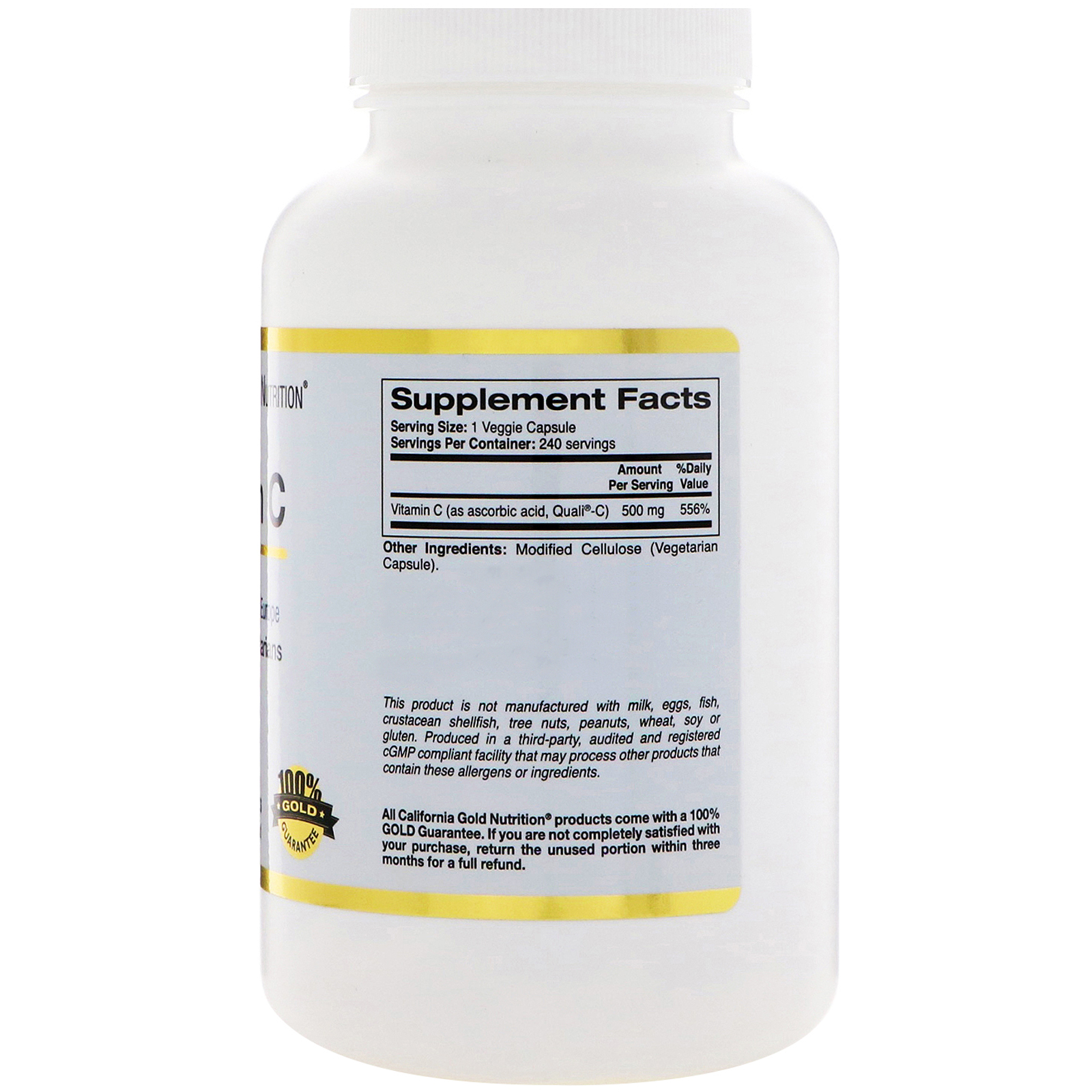 California Gold Nutrition, Gold C, Vitamina C, 500 mg, 240 cápsulas vegetarianas