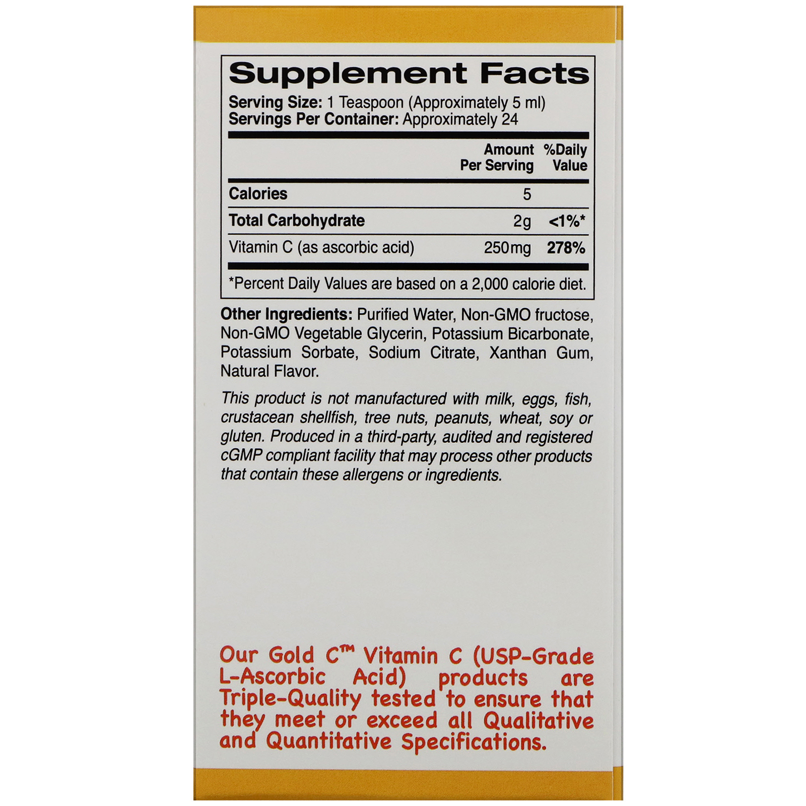 California Gold Nutrition, Vitamin-C Líquida para Crianças, Sabor Laranja, 4 fl oz (118 ml)