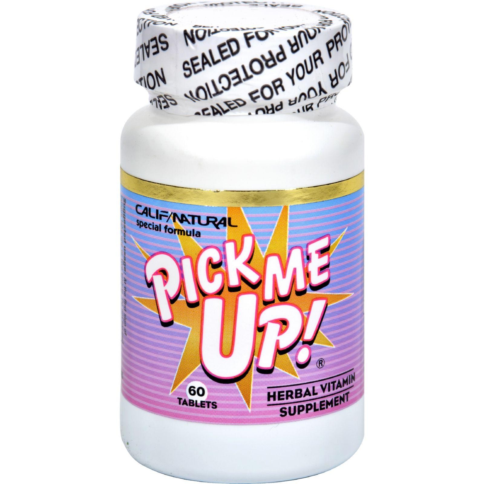 California Natural Pick Me Up Vitamin Description: Nutritional Energy Booster Natural Vitamin Mineral and Herb Formula Special Formula Pick Me Up is for anyone needing extra energy at anytime. The mild stimulant formula is effective for workers, housewife/mothers, students, athletes, drivers, security, law enforcement, firemen or anyone who wants a boost at the end of the day or week. Pick Me Up is a herbal energizer perfect for anyone seeking extra energy and focus any time of the day. Pick me up contains no harsh stimulants and will not induce jitters or produce hard crashes. Disclaimer These statements have not been evaluated by the FDA. These products are not intended to diagnose, treat, cure, or prevent any disease.