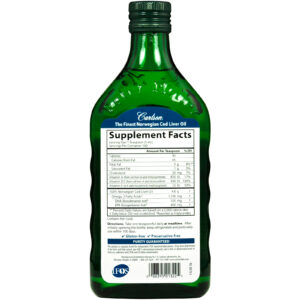 | Vitamin A (from cod liver oil and retinyl palmitate) | 850 IU | 17% |