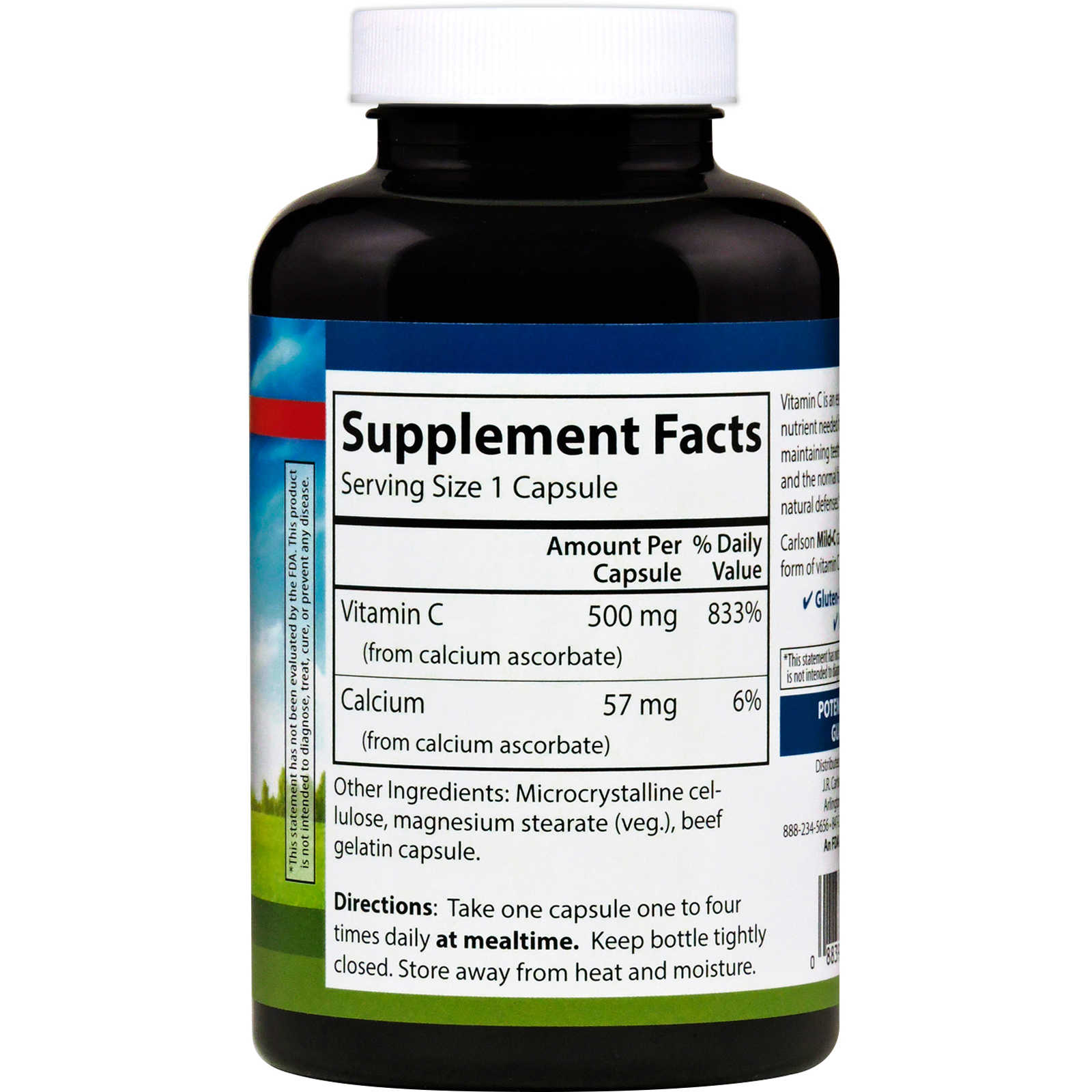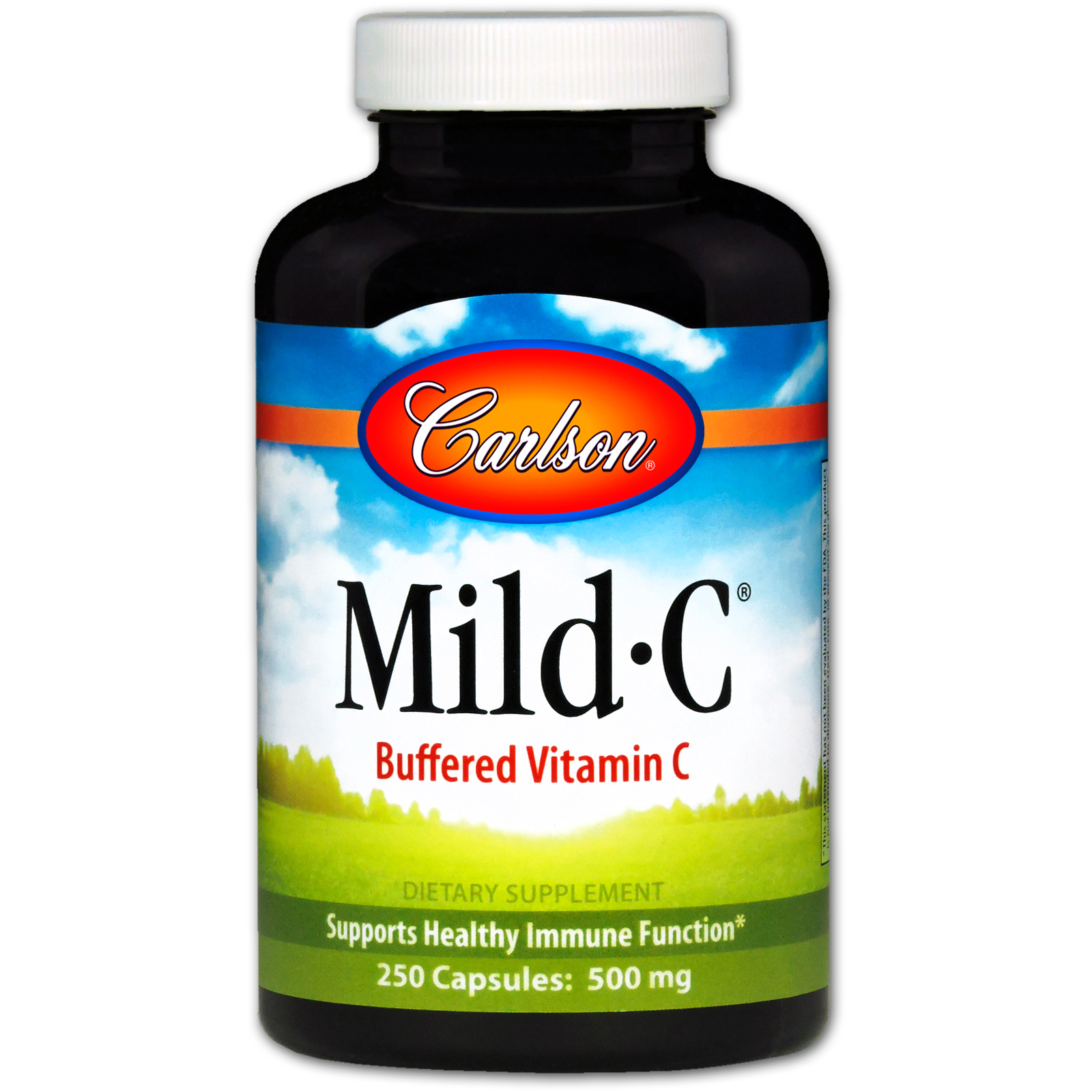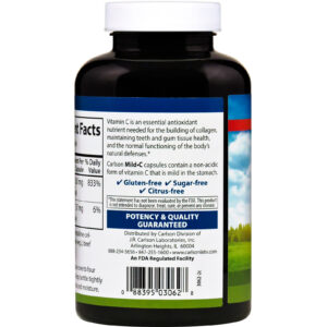 As cápsulas Carlson Mild-C contém uma forma não acídica da vitamina C que é suave com o estômago.