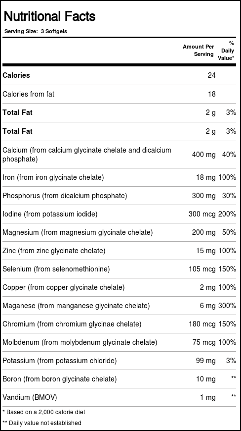 Carlson Labs Liquid Multiple Minerals provide a wide range of minerals from Calcium to Vandium in each serving.