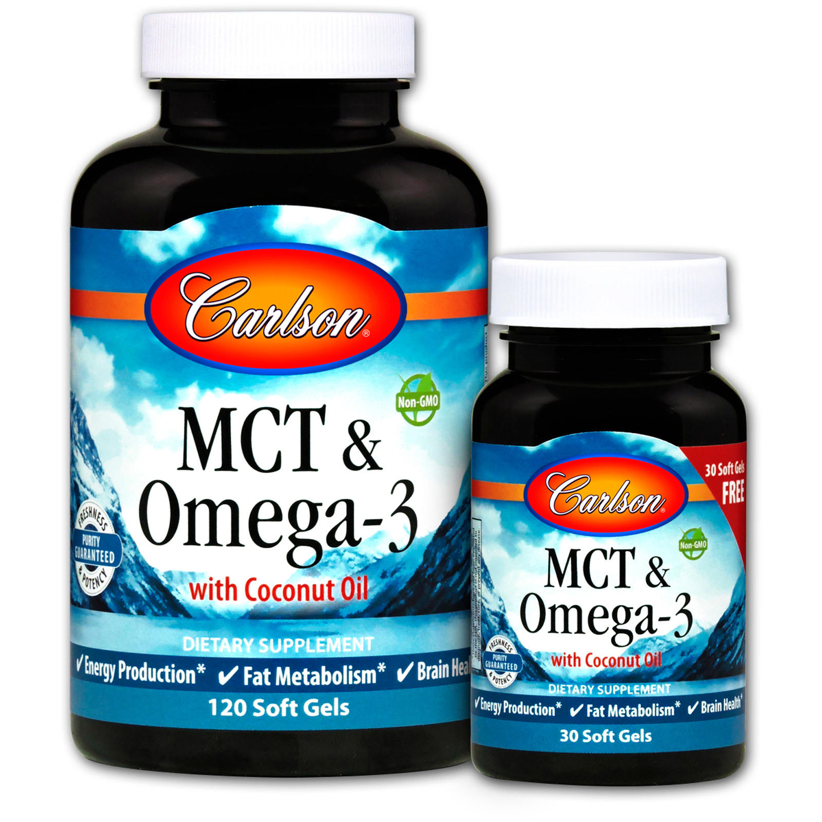 Get two of the most important healthy fats in a single supplement. MCT & Omega-3 provides medium-chain triglycerides (MCTs) from coconut oil and omega-3 fatty acids from fish oil. MCT & Omega-3 promotes energy production and supports heart, brain, vision, and joint health.