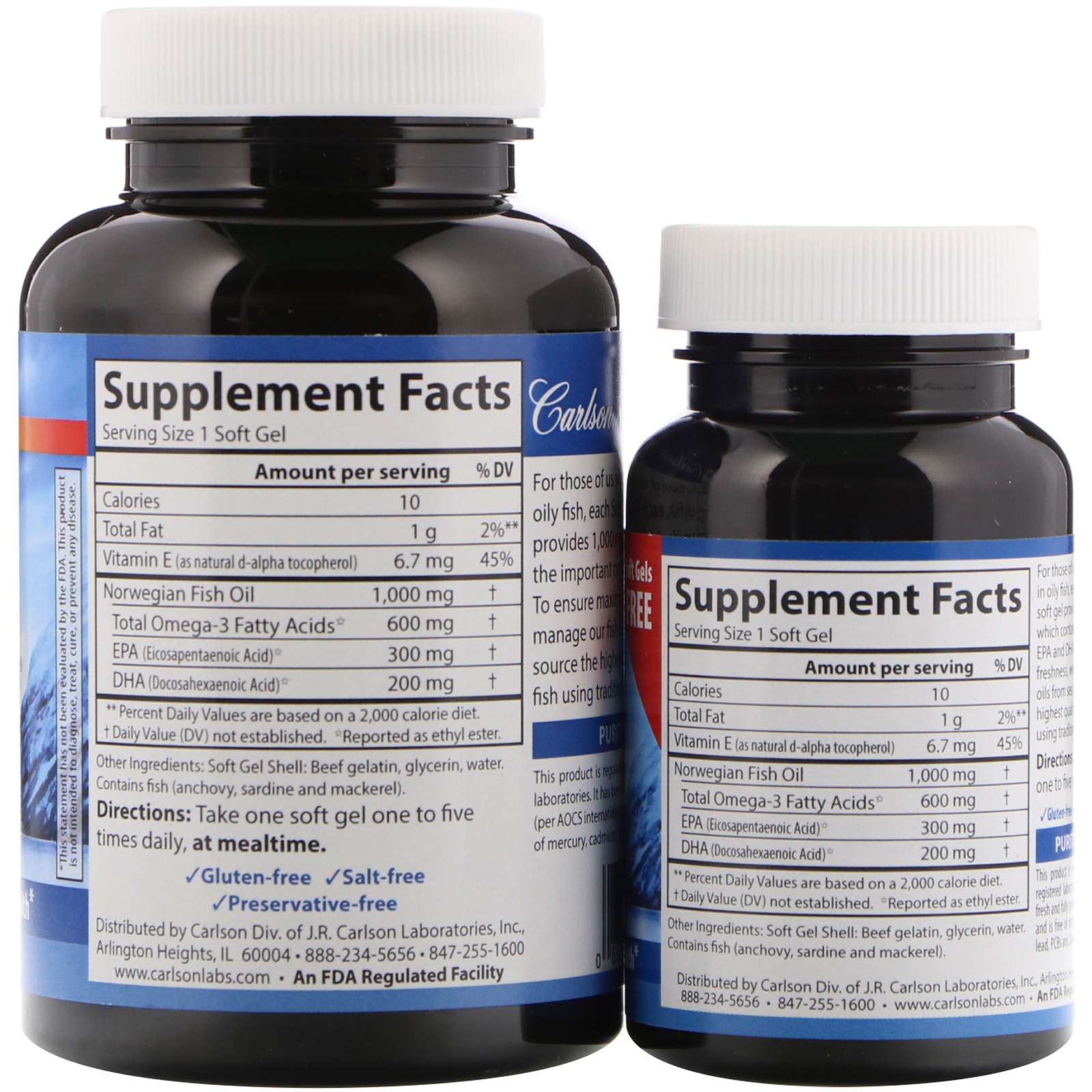 Carlson Labs, Pérolas Super Ômega-3 Selvagens, 600 mg, 100 + 30 cápsulas gelatinosas gratuitas
