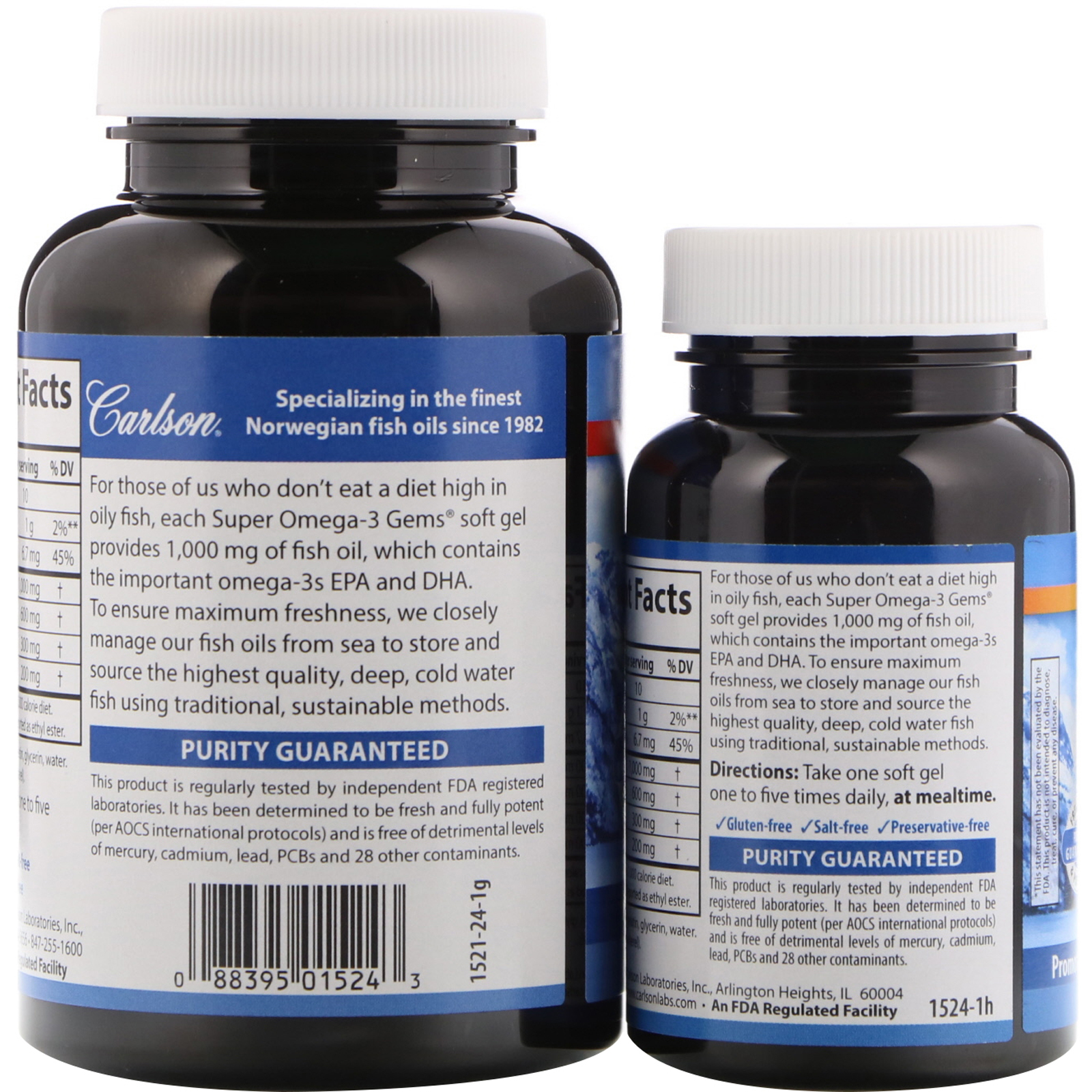 Para os que não têm uma dieta rica em óleos de peixe, cada cápsula gelatinosa do Super Omega-3 Gems fornece 1.000 mg de óleo de peixe, que contém os importantes ômegas 3 EPA e DHA. Para garantir o máximo frescor, controlamos de perto nossos óleos de peixe, do mar até a loja, e obtemos os peixes de águas frias e profundas da mais alta qualidade usando métodos tradicionais e sustentáveis.