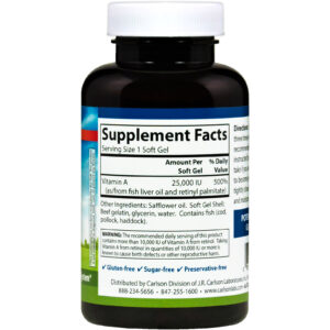 - Carlson Labs, Vitamina A, 25.000 UI, 100 cápsulas softgel