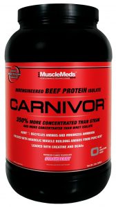 CARNIVOR goes beyond the normal high creatine content of beef. To push the anabolic activation and cell volumizing effects of creatine even greater, each serving of CARNIVOR supplies 20 times more creatine than steak to saturate your muscles for explosive strength and growth. To further boost the anabolic muscle building action of CARNIVOR, additional BCAAs are added to the purified Beef Protein Isolate to promote a positive nitrogen balance, increase protein synthesis, decrease catabolism, improve workout performance and reduce muscle fatigue.