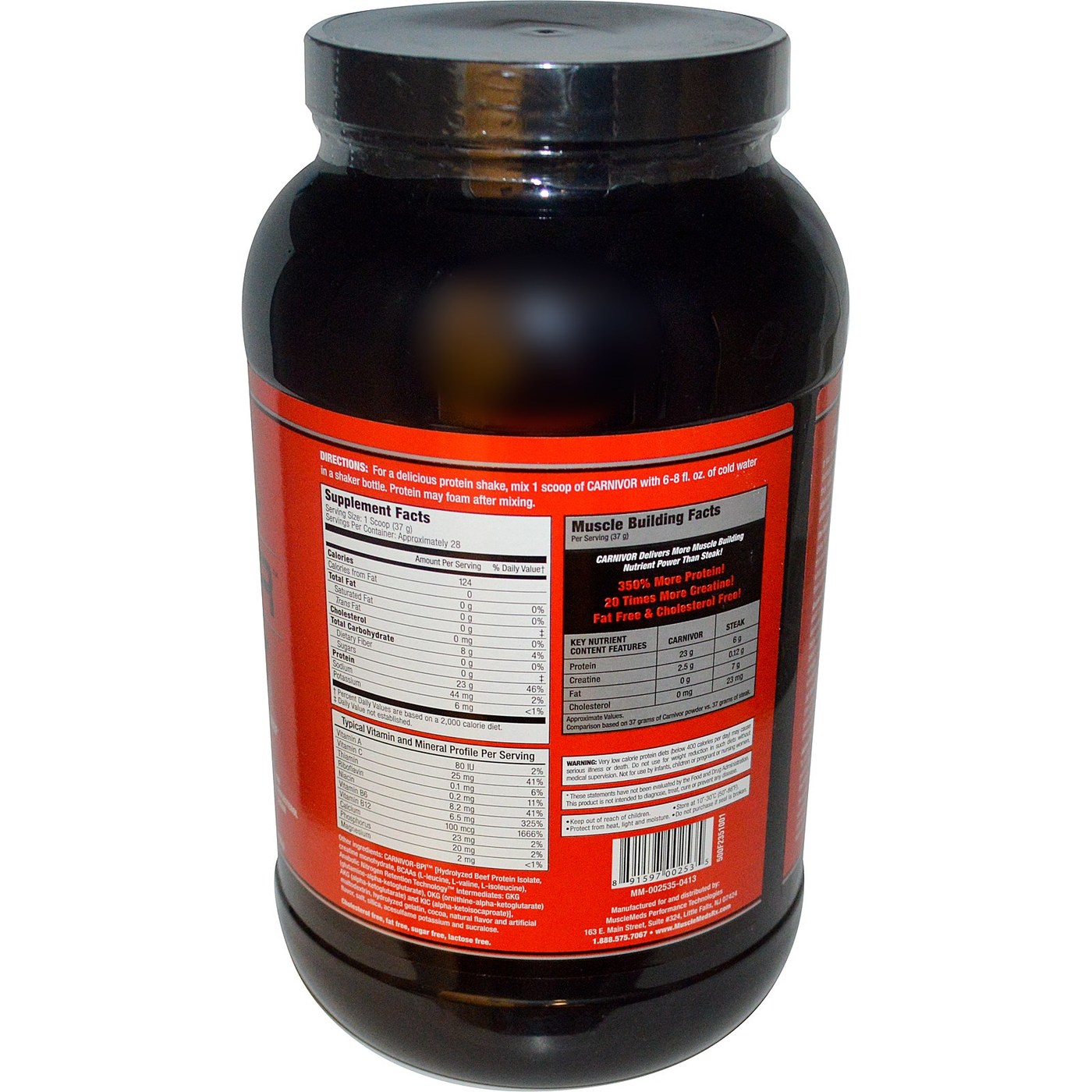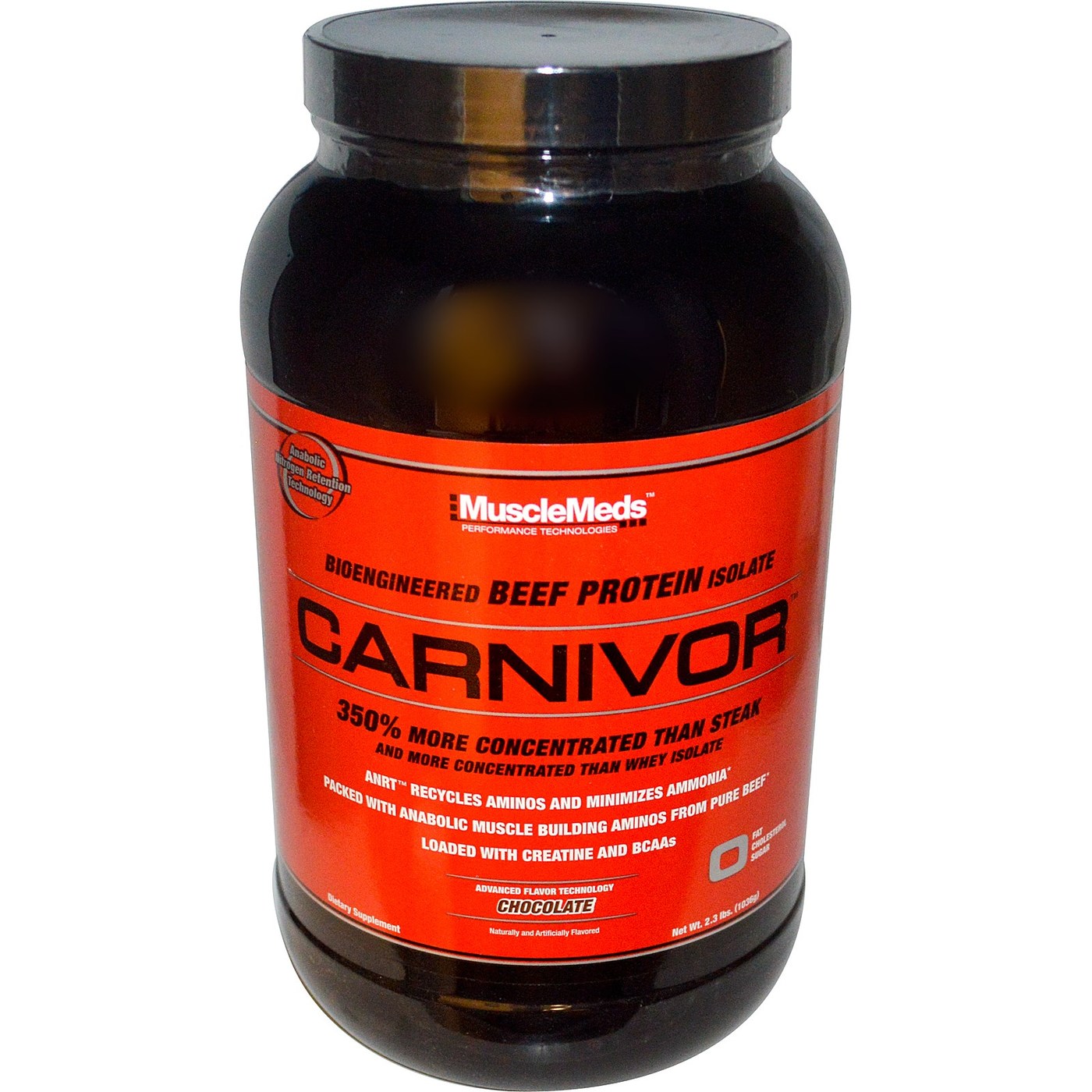 Este produto utiliza a proteína da carne, BCAAs e muitas vitaminas e minerais para ajudar com a construção, tamanho e fouça muscular. Carnivou da MuscleMeds contém 20 vezes o conteúdo de creatina da carne e minimiza amônia resultando em um shake de proteína saudável e delicioso. Este pó de proteína pode ajudar a promover um equilíbrio positivo de nitrogênio, melhouar o desempenho físico e também prevenir lesões musculares após os treinos.