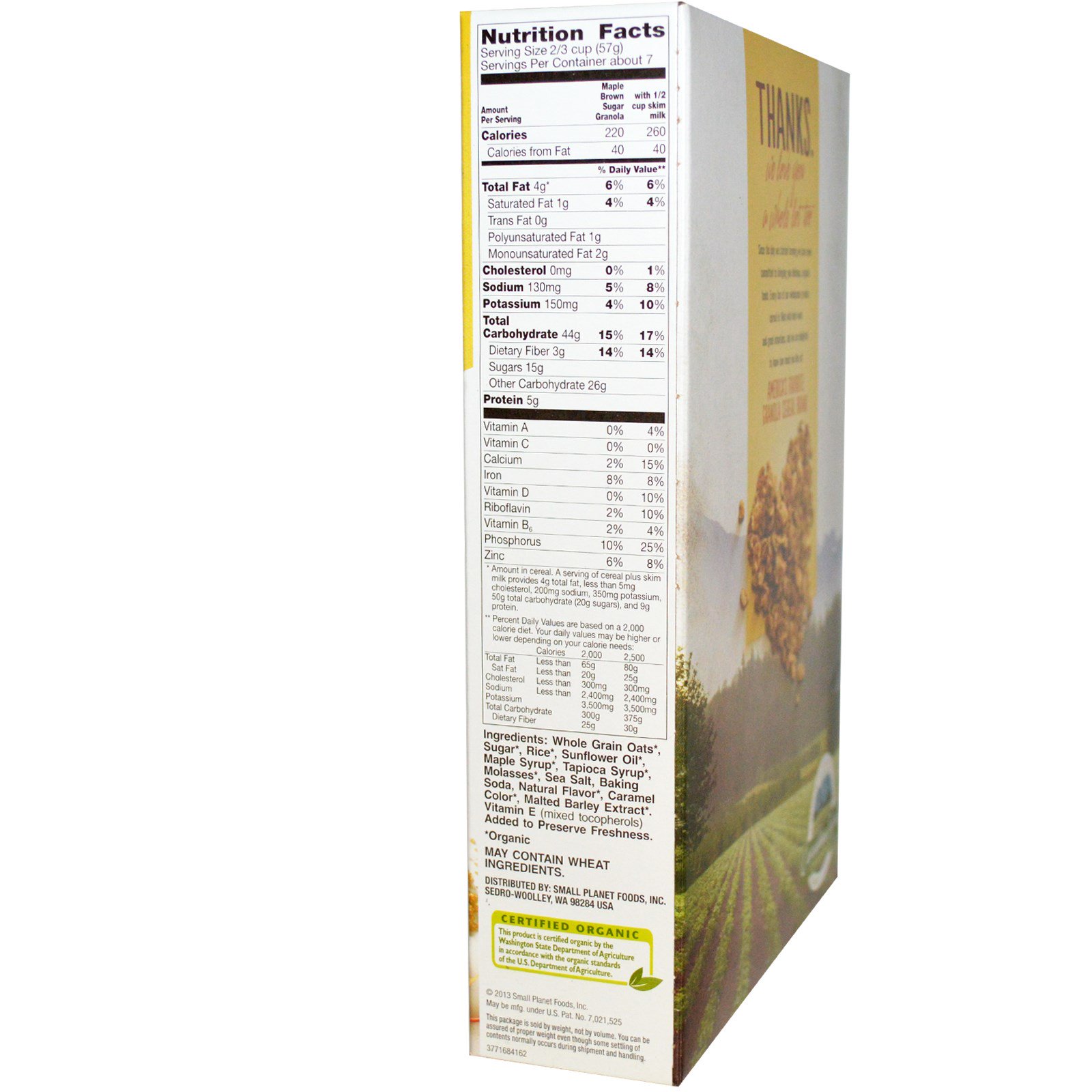 - Este produto recebeu a certificação orgânica da Secretaria de Agricultura do Estado de Washington