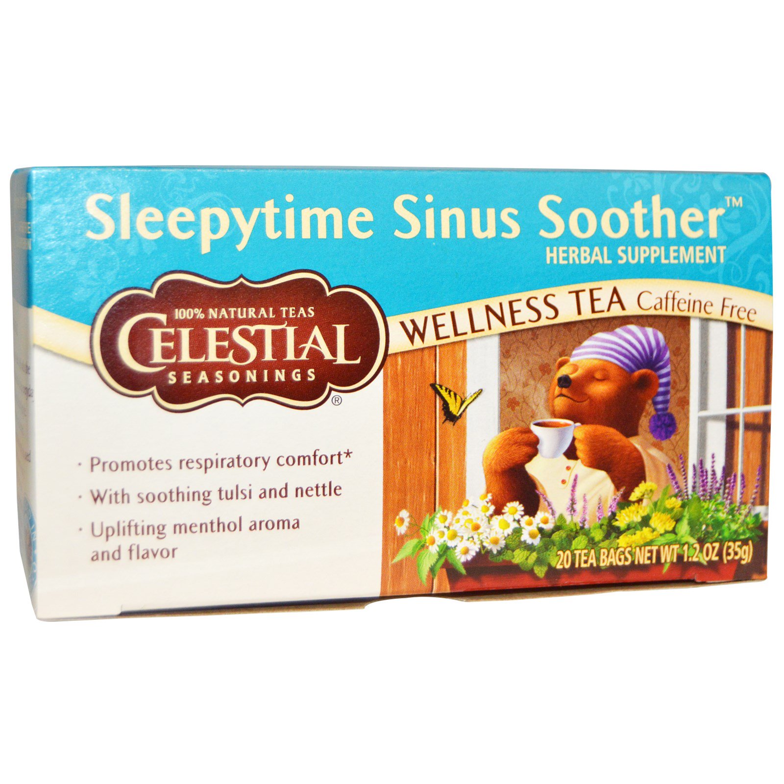 Seasonal respiratory discomforts like nasal congestion and sinus pressure happen to everyone. But with its time-honored herbal ingredients and exhilarating menthol aroma and flavor, Sleepytime Sinus Soother can help. This handcrafted blend features tulsi (or "holy basil"), trusted for centuries to promote respiratory comfort, and stinging nettle, traditionally used when mild congestion occurs. And because it has Sleepytime’s beloved blend of chamomile, spearmint and lemongrass, you know you can trust Sinus Soother to help you forget your symptoms and relax!