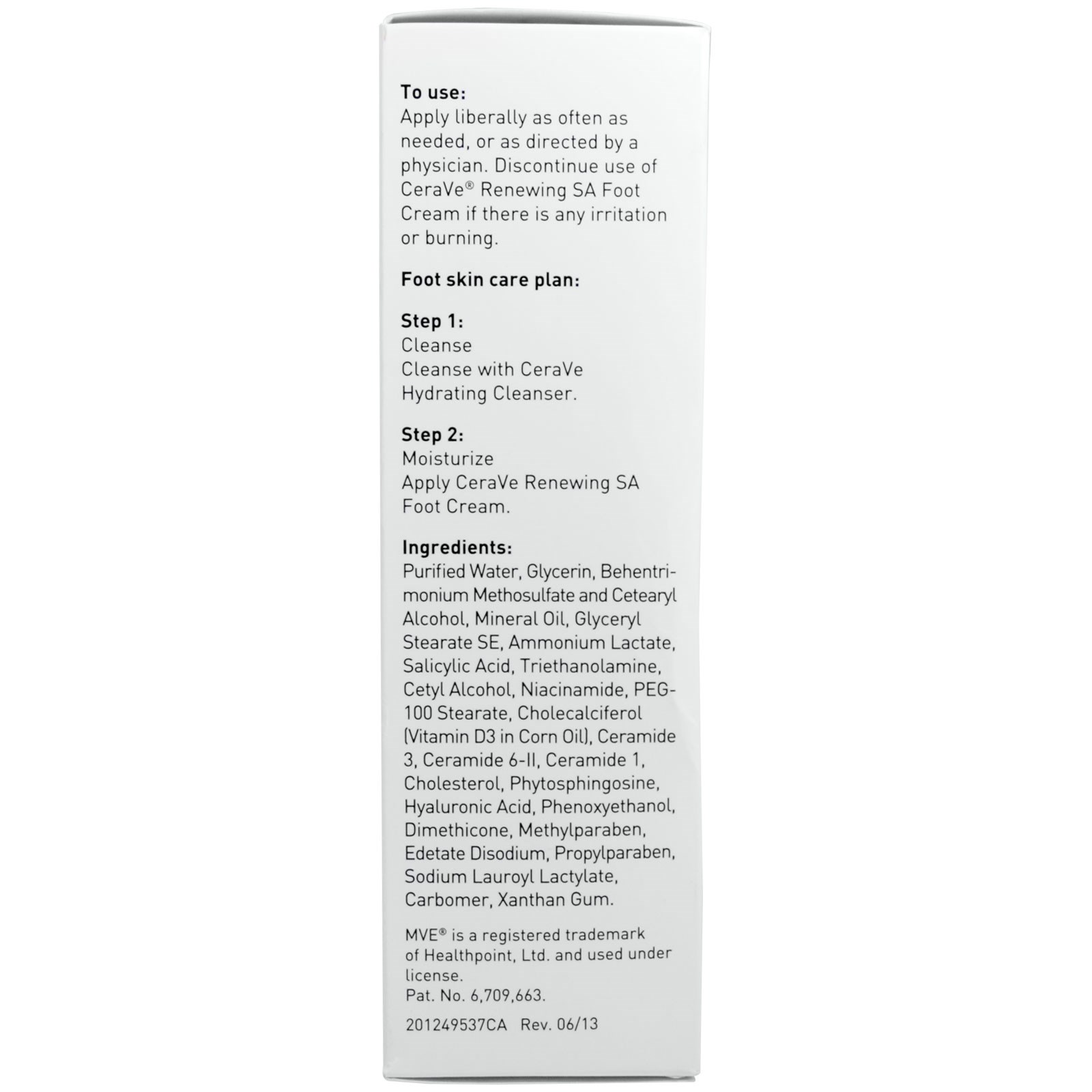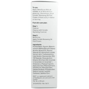 Aplique generosamente tantas vezes quanto necessário, ou conforme indicado por um médico. Interrompa o uso do Creme para os Pés CeraVe Renewing SA Foot caso ocorra irritação ou ardor.