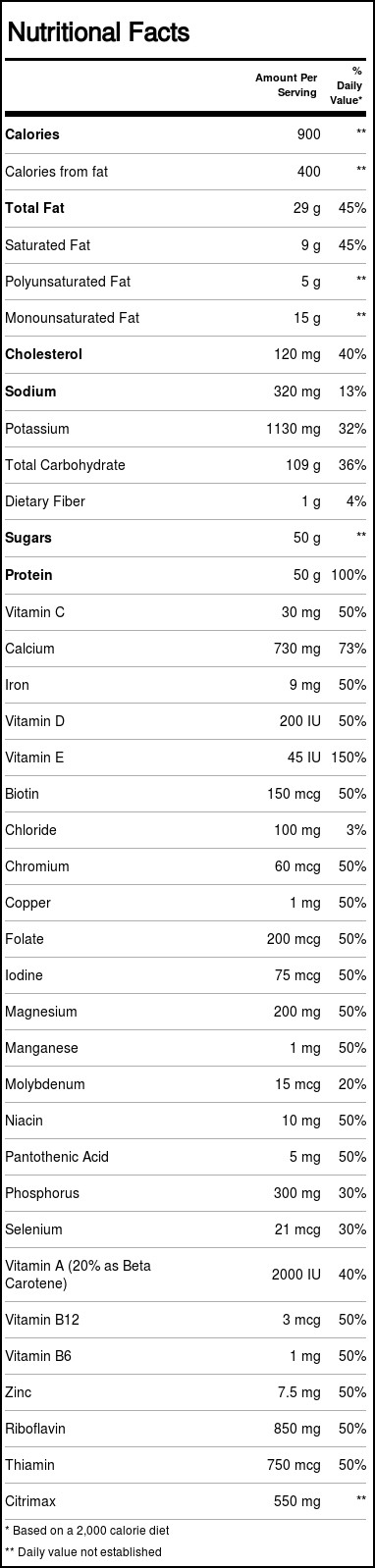 Recomendações de uso: Gradually add 4 scoops of Super Heavyweight Gainer 1200 into 20 fl oz of cold water ou whole leite with continuous mixing.