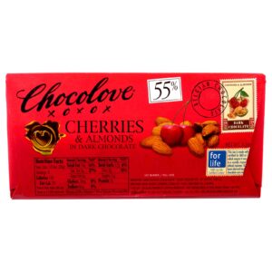 - Cerejas de Michigan e amêndoas tostadas a seco em chocolate amargo belga