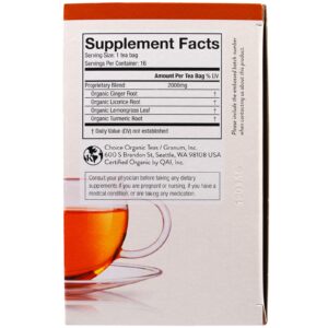 Choice Organic Teas, Orgânico, Digestão Fácil, Mistura de Gengibre e Cúrcuma, Sem Cafeína, 16 Sachês, 1.1 oz (32 g)