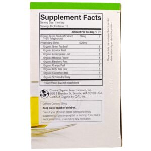 Orgânico verde folha de chá extrato, folha de chá verde orgânico, raiz de alcaçuz orgânico, folha de limoeiro orgânica, flor de hibisco orgânico, raiz de eleuthero orgânica, casca de laranja orgânica, orgânica gotu folha de kola, casca de canela orgânica, baga orgânica schizandra.