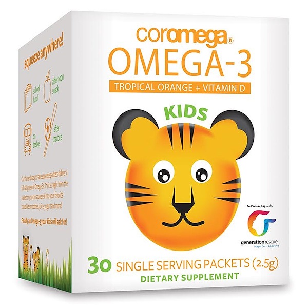 Coromega, Kids, Ômega 3, Laranja Tropical + Vitamina D, 30 sachês embalados individualmente 2.5 g