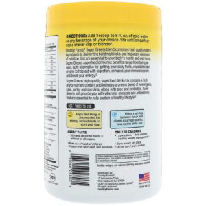 Country Farms Super Greens blend combines high quality natural ingredients to deliver the building blocks and important elements of nutrition that are essential to your body’s health and well-being. Super Greens superfood drink mix benefits range from being an easy, tasty alternative for getting your daily fruits, vegetables and greens to help aid with digestion, enhance your immune system and boost your energy.