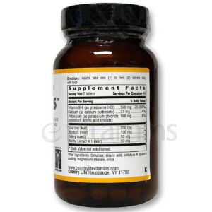 Notas: Free of yeast, corn, wheat, soy, gluten, milk, salt, sugar, starch, preservatives or artificial color.