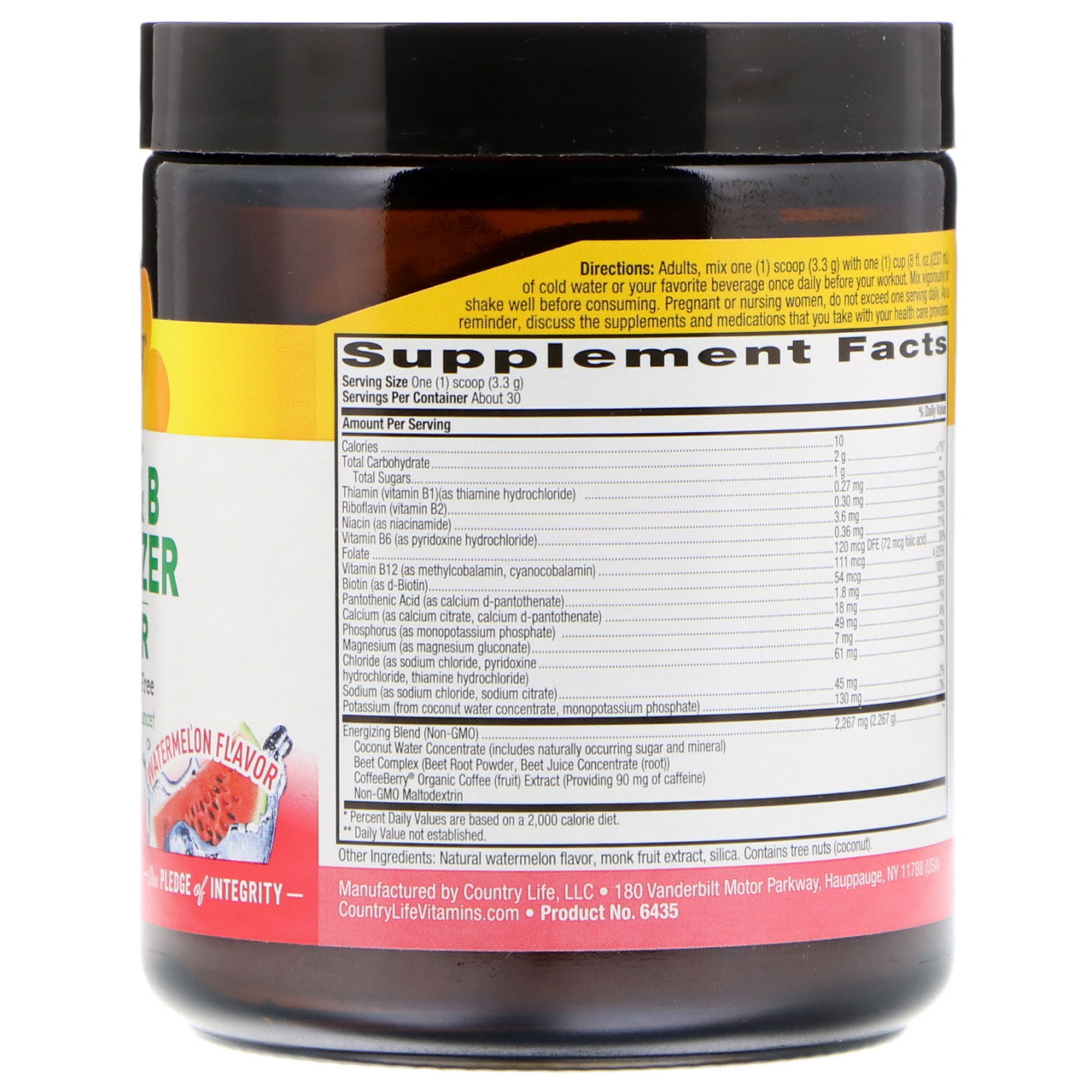 Country Life, Beet & B Energizer Powder, Watermelon Flavor, 3.5 oz (99.6 g)