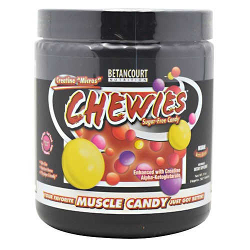 Bite into the newest, most convenient and delicious form of creatine on the planet, Chewies™ Creatine from Betancourt Nutrition.For all those times when a protein shake or regular food isn’t convenient, chewable Chewies™ are ready for immediate anabolic action. All it takes is a single bite to start raising your tissue levels of BCAA, creatine or glutamine by amounts not achievable from the diet alone. Chewies™ Triple-Shot Variety is available in Tropical, Wild Berry and Grape (Creatine and Glutamine) or Strawberry, Tangerine and Berry (BCAA). Chewies™ contain virtually zero sodium and only 1-1.5 g of sugar.